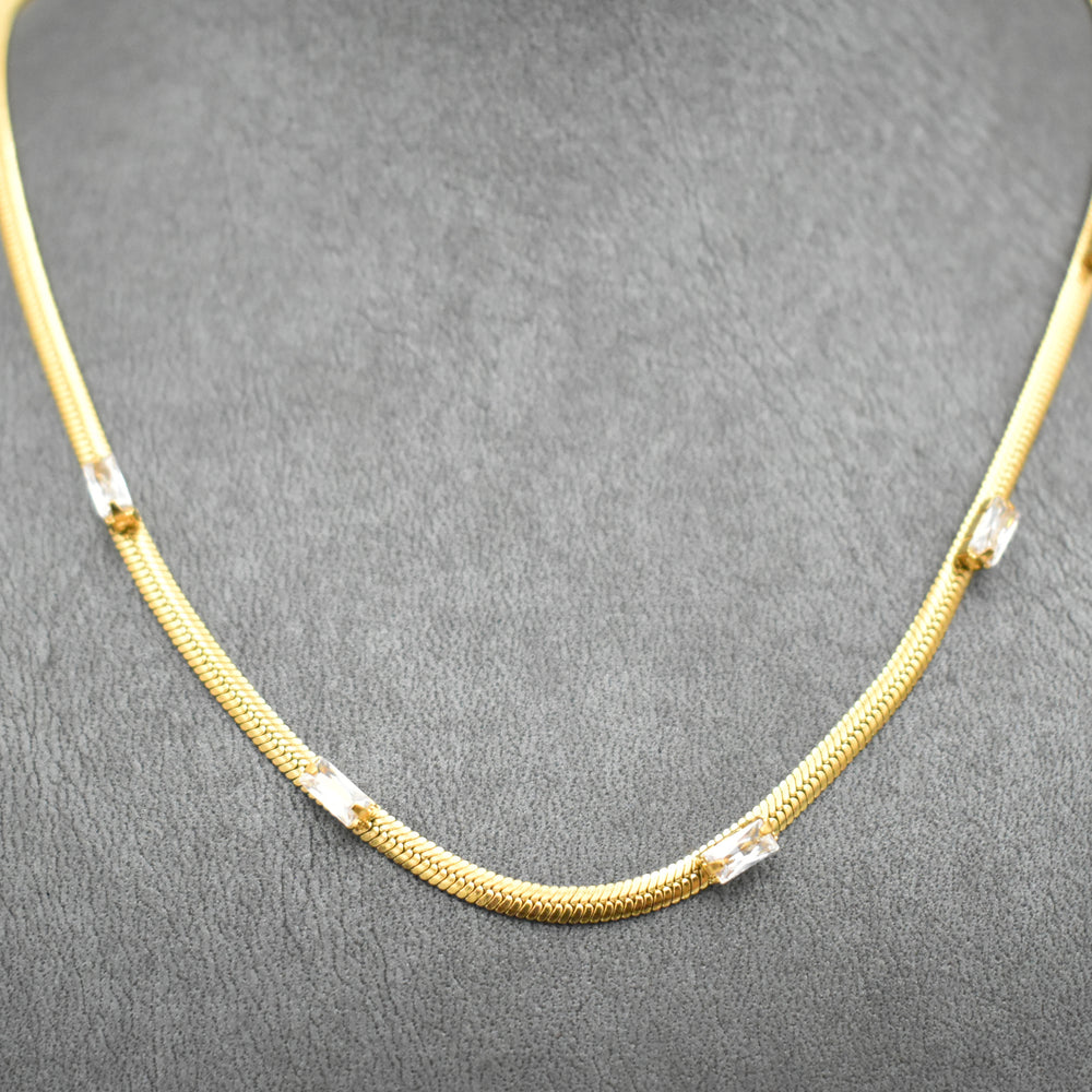 Gold Toned Snake with Baguette Cubic Necklace